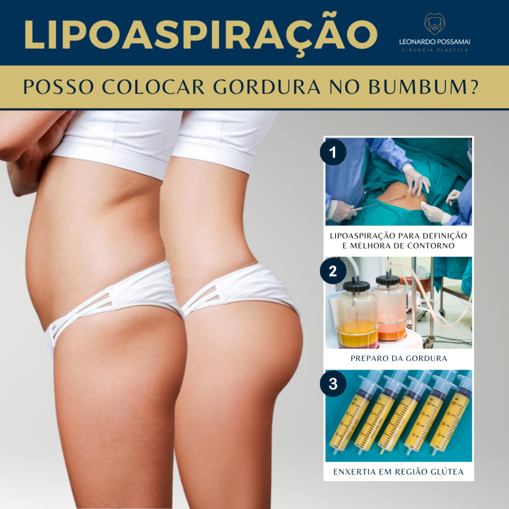 Essa gordura pode ser colocada na região glútea melhorando o contorno, corrigindo irregularidades ou aumentando o seu volume.